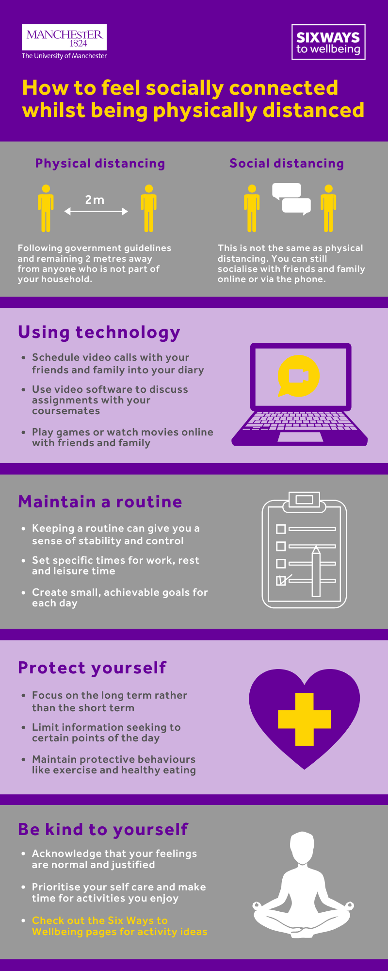 This short video also provides some general tips about how you can look after your wellbeing at home.