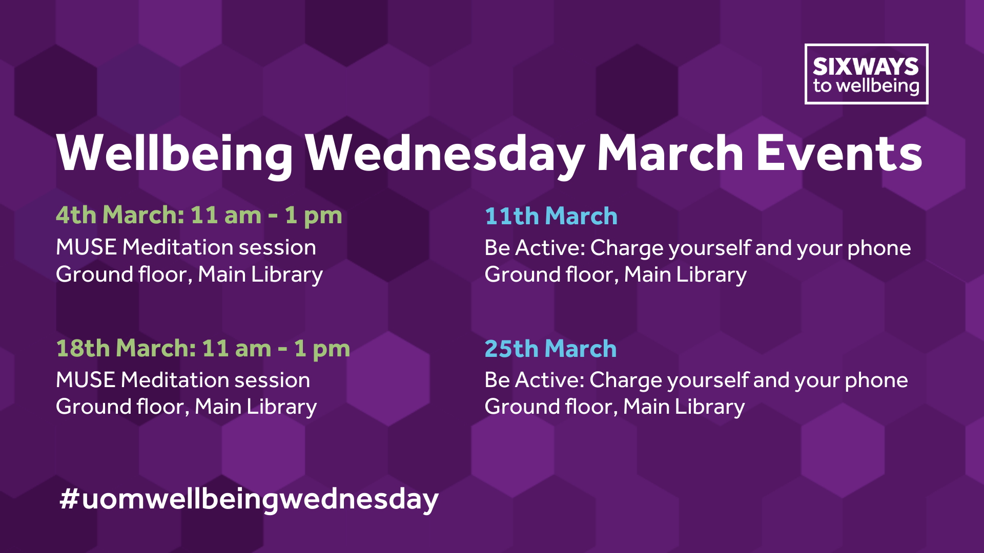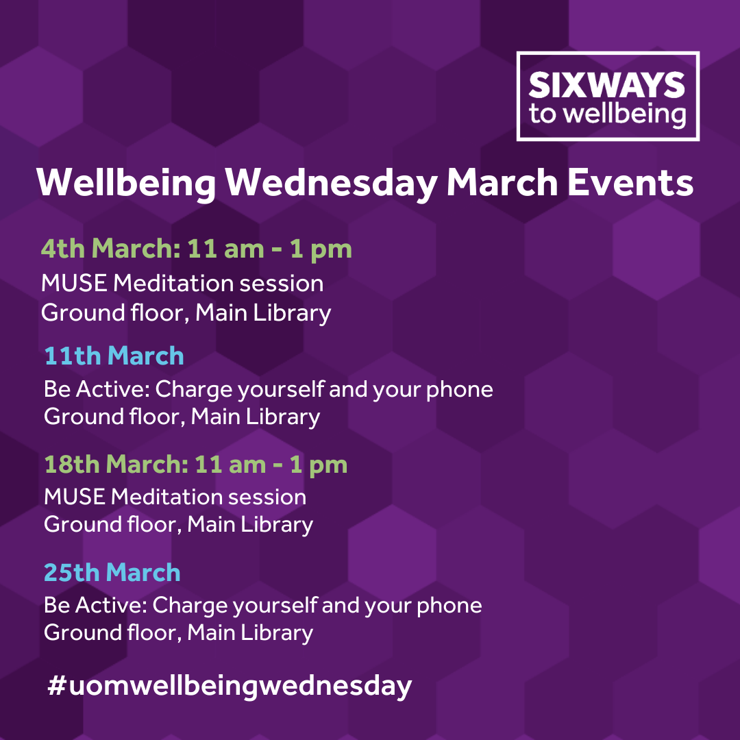 Remember to use the hashtag #uomwellbeingwednesdays in any social media posts!